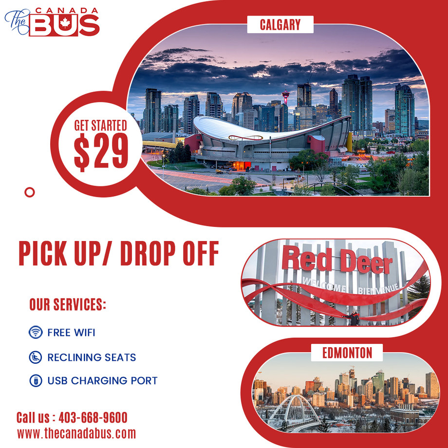 The Canada Bus is a trusted name in the travel industry. You can enjoy all the benefits of travelling by bus in Calgary, Edmonton, and red deer without worrying about prices and changing. Book cheap bus tickets online for your next trip. The bus offers a variety of amenities such as reclining seats, wifi, a water bottle, a restroom, a USB charging point, and special discounts for students.